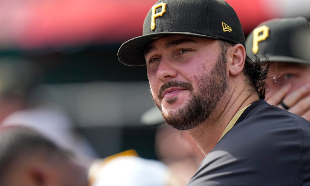 Pittsburgh Pirates starting pitcher Paul Skenes (30) watches from the dugout in the sixth inning of the MLB National League game between the Cincinnati Reds and...