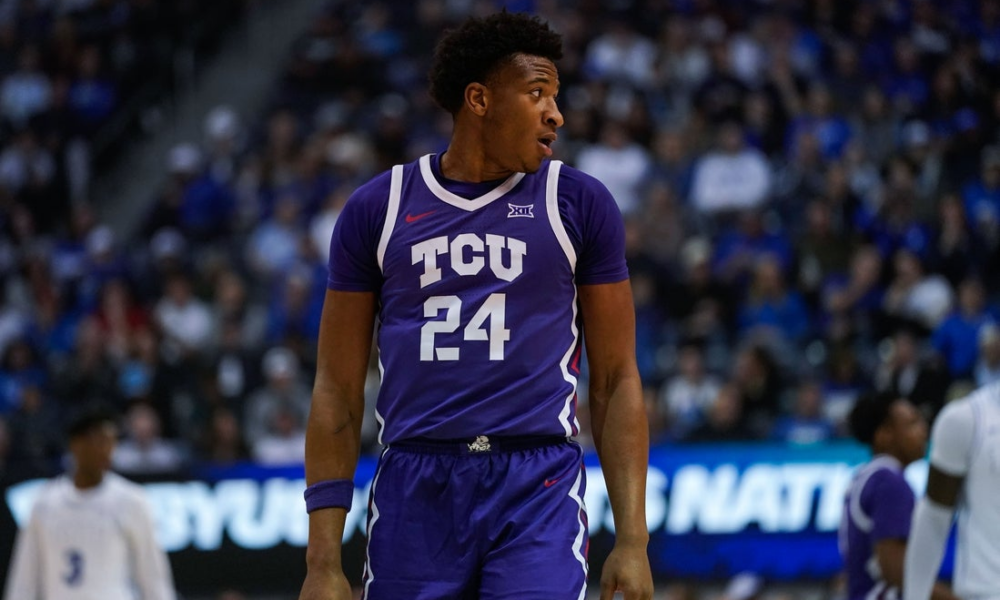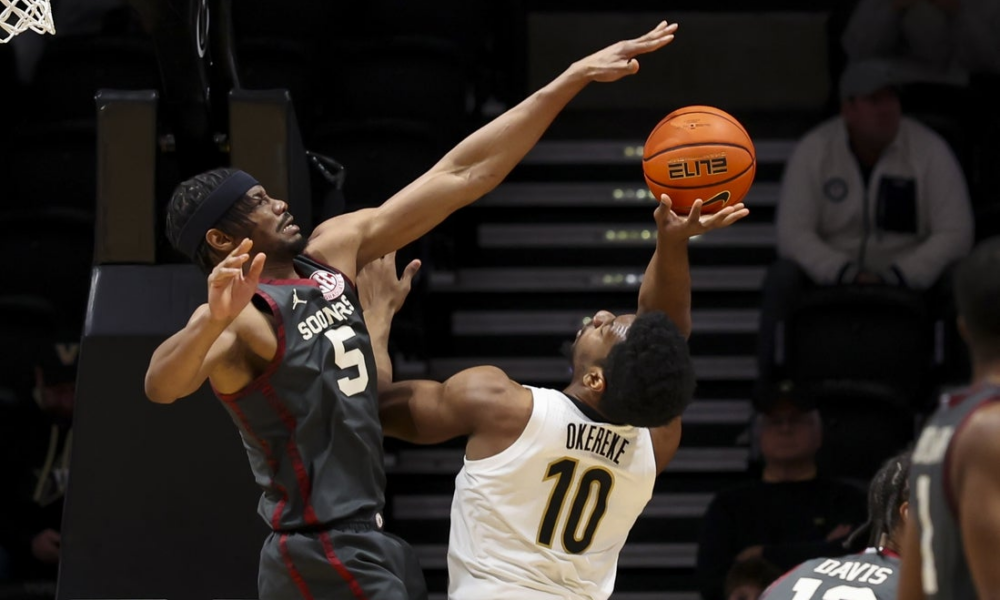 Feb 4, 2026; Stanford, California, USA; Clemson Tigers forward RJ Godfrey (0) reacts after scoring and drawing a foul against the Stanford Cardinal during the second...
