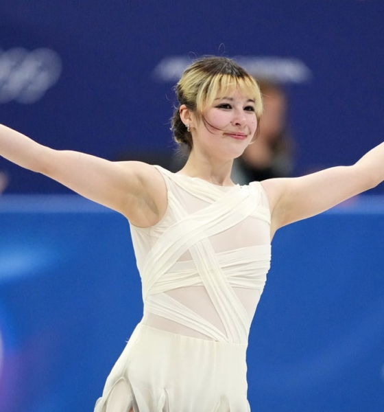 [US, Mexico & Canada customers only] Feb 6, 2026; Milan, ITALY; Fabric pours out from three tubes of paint from above as performers walk on stage...