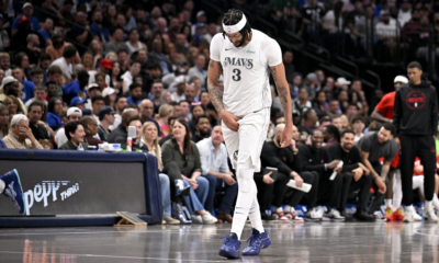 Feb 8, 2025; Dallas, Texas, USA; Dallas Mavericks forward Anthony Davis (3) leaves the game against the Houston Rockets during the third quarter at the American...