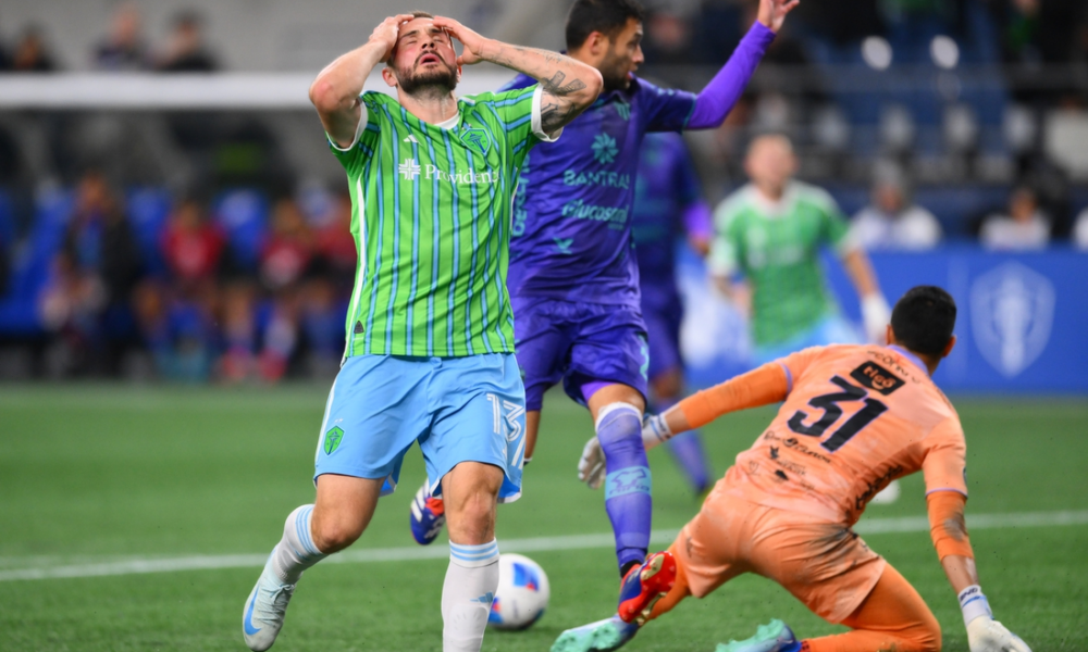 Feb 26, 2025; Seattle, Washington, USA; Seattle Sounders FC forward Jordan Morris (13) reacts to missing a goal shot against Antigua GFC during the first half...