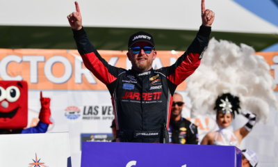 Mar 15, 2025; Las Vegas, Nevada, USA; NASCAR Xfinity Series driver Justin Allgaier (7) celebrates his victory of The LiUNA! race at Las Vegas Motor Speedway....