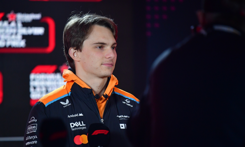 Nov 20, 2024; Las Vegas, Nevada, USA; McLaren Team driver Oscar Piastri (81) during media availalbilities at Las Vegas Circuit. Mandatory Credit: Gary A. Vasquez-Imagn Images...