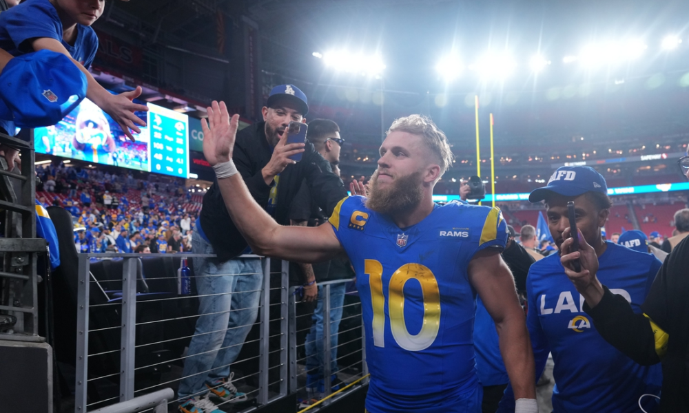 Jan 13, 2025; Glendale, AZ, USA; Los Angeles Rams wide receiver Cooper Kupp (10) reacts after the NFC wild card game against the Minnesota Vikings at...