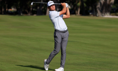 Michael Brennan plays his shot from the ninth fairway during the second day of the RSM Classic PGA golf tournament on the Plantation Course at Sea...