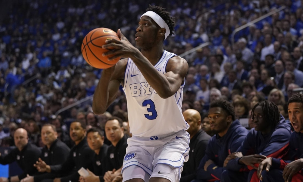 Jan 26, 2026; Provo, Utah, USA; BYU Cougars forward AJ Dybantsa (3) takes a three point shot during the first half against the Arizona Wildcats at...