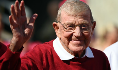 Oct 7, 2023; Raleigh, North Carolina, USA; Former North Carolina State Wolfpack head coach Lou Holtz is honored along with his 1973 football team during the...