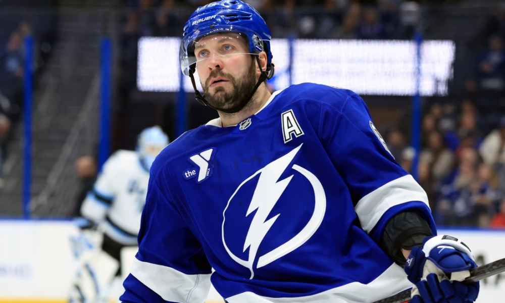 Jan 26, 2026; Tampa, Florida, USA; Tampa Bay Lightning right wing Nikita Kucherov (86) looks on against the Utah Mammoth during the third period at Benchmark...