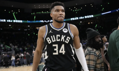 Jan 23, 2026; Milwaukee, Wisconsin, USA; Milwaukee Bucks forward Giannis Antetokounmpo (34) walks from the court following the game against the Denver Nuggets at Fiserv Forum....