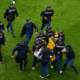 Security staff tackle Senegal fans who invaded the pitch after Morocco were awarded a penalty following a VAR review during the Africa Cup of Nations final...