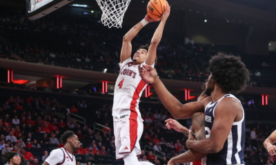 Jan 28, 2026; New York, New York, USA; St. John’s Red Storm guard Oziyah Sellers (4) grabs a rebound in the first half at Madison Square...