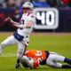 Jan 25, 2026; Denver, CO, USA; New England Patriots quarterback Drake Maye (10) rushes the ball against Denver Broncos safety Devon Key (26) during the first...
