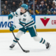 Jan 27, 2026; Vancouver, British Columbia, CAN; San Jose Sharks forward Macklin Celebrini (71) shoots against the Vancouver Canucks in the third period at Rogers Arena....