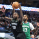 Jan 28, 2026; Dallas, Texas, USA; Minnesota Timberwolves forward Julius Randle (30) drives to the basket as Dallas Mavericks forward Naji Marshall (13) defends at American...