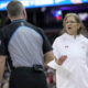 Wisconsin head coach Robin Pingeton question a call during the second half of their game Sunday, January 18, 2026 at the Kohl Center in Madison, Wisconsin....