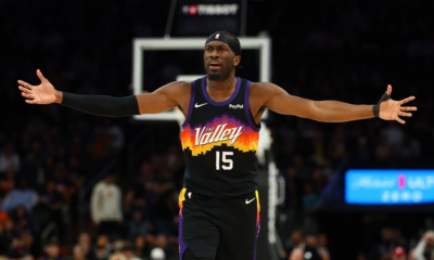 Jan 25, 2026; Phoenix, Arizona, USA; Phoenix Suns center Mark Williams (15) against the Miami Heat in the second half at Mortgage Matchup Center. Mandatory Credit:...