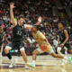Jan 24, 2026; Stanford, California, USA; General view of the basketball going through the hoop between the Stanford Cardinal and the California Golden Bears at Maples...
