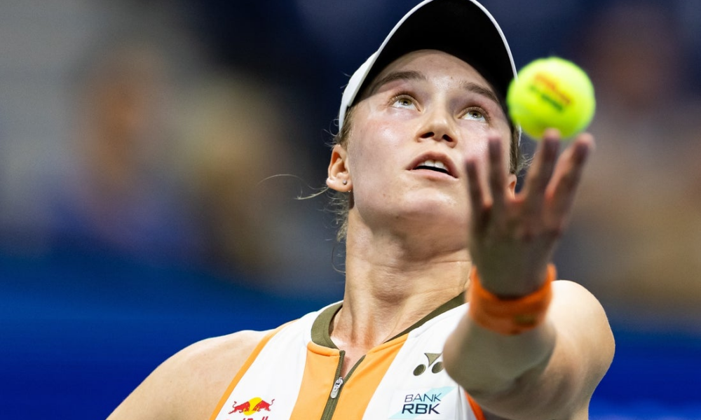 Aug 31, 2025; Flushing, NY, USA; Elena Rybakina of Kazakhstan serves against Marketa Vondrousova of Czech Republic in the fourth round of the women’s singles at...