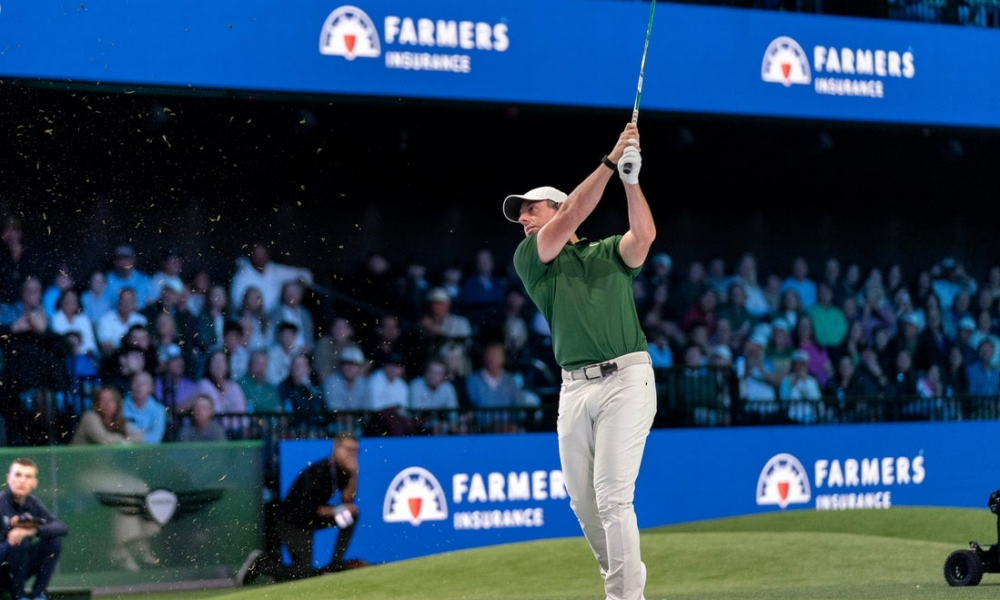 Rory McIlroy of Boston Common Golf tees off against Los Angeles Golf Club at SoFi Center on January 2, 2026, in Palm Beach Gardens, Florida. Rory...