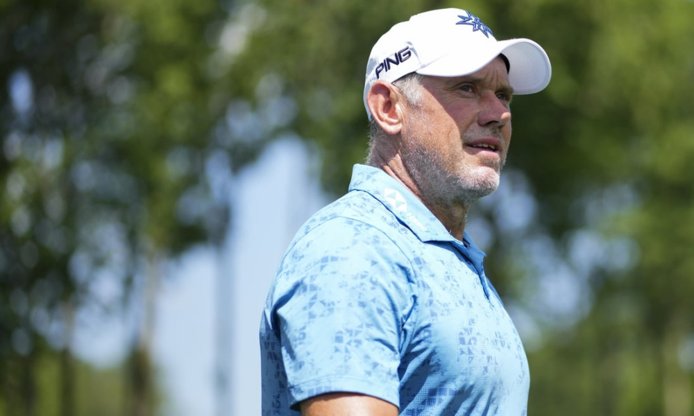 Aug 22, 2025; Detroit, Michigan, USA; Lee Westwood of Majesticks GC walks the course during the quarterfinals of the LIV Golf Michigan Team Championship at The...