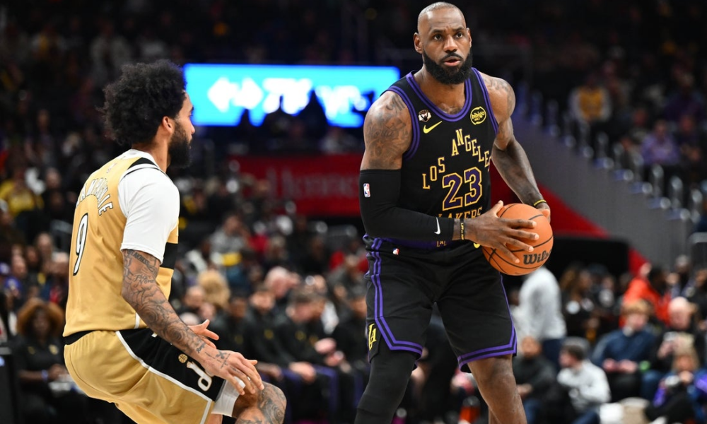 Jan 30, 2026; Washington, District of Columbia, USA; Los Angeles Lakers forward LeBron James (23) looks to pass against the Washington Wizards during the second half...