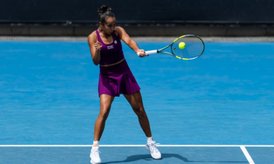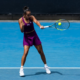 Jan 20, 2026; Melbourne, Victoria, Australia; Leylah Fernandez of Canada in action against Janice Tjen of Indonesia in the first round of the women’s singles at...