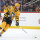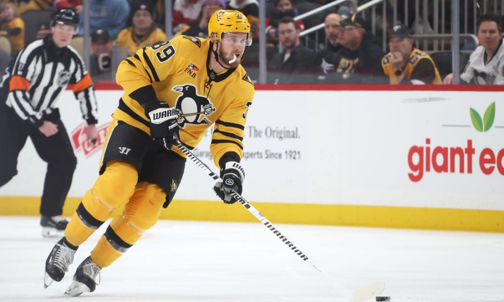 Jan 29, 2026; Pittsburgh, Pennsylvania, USA; Pittsburgh Penguins right wing Anthony Mantha (39) skates up ice with the puck against the Chicago Blackhawks during the first...
