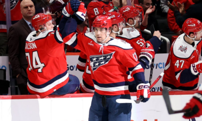Jan 31, 2026; Washington, District of Columbia, USA; Washington Capitals center Dylan Strome (17) celebrates with his teammates after scoring a goal during the second period...
