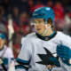 Jan 31, 2026; Calgary, Alberta, CAN; San Jose Sharks center MacKlin Celebrini (71) against the Calgary Flames during the first period at Scotiabank Saddledome. Mandatory Credit:...