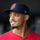 Aug 22, 2025; Bronx, New York, USA; Boston Red Sox pitcher Jordan Hicks (46) prior to the game against the New York Yankees at Yankee Stadium....