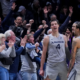 Jan 31, 2026; Cincinnati, Ohio, USA; Xavier Musketeers forward Filip Borovicanin (4) celebrates with teammates after making the game-winning basket against the DePaul Blue Demons at...