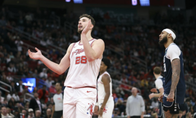 Jan 31, 2026; Houston, Texas, USA; Houston Rockets center Alperen Sengun (28) reacts after a play during the fourth quarter against the Dallas Mavericks at Toyota...