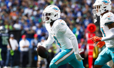 Sep 22, 2024; Seattle, Washington, USA; Miami Dolphins cornerback Kader Kohou (4) celebrates following an interception against the Seattle Seahawks during the first quarter at Lumen Field. Mandatory Credit: Joe Nicholson-Imagn Images The Kansas City Chiefs are signing cornerback Kader Kohou, a former starter with the Miami Dolphins who missed all of last season with a partially torn ACL, ESPN reported on Thursday.