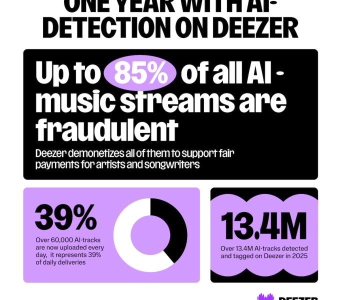 Alongside the move, Deezer reported that 85% of streams from fully AI-generated tracks are deemed fraudulent. Notably, the service now receives 60,000 AI tracks per day, totaling 13.4 million AI-detected songs. By contrast, in June of last year, fully AI-generated music made up 18% of daily uploads, surpassing 20,000 tracks.