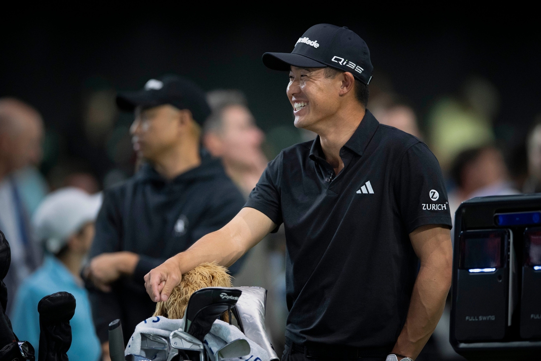 Collin Morikawa of Los Angeles Golf Club before Boston Common Club TGL match at SoFi Center on February 4, 2025, in Palm Beach Gardens, Florida. Los Angeles Golf Club climbed out of a 4-0 hole to beat New York Golf Club 5-4 in overtime and clinch the first playoff berth in the inaugural TGL playoffs on Monday in Palm Beach Gardens, Fla.