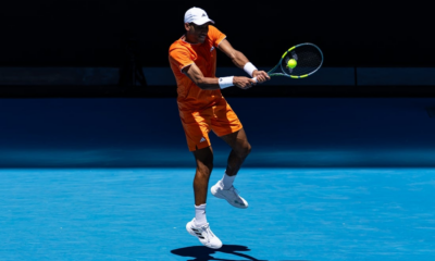 Jan 19, 2026; Melbourne, Victoria, Australia; Felix Auger-Aliassime of Canada in action against Nuno Borges of Portugal in the first round of the men’s singles at the Australian Open at John Cain Arena in Melbourne Park. Mandatory Credit: Mike Frey-Imagn Images Defending champion Felix Auger-Aliassime delivered 20 aces while posting a 6-4, 6-7 (5), 6-1 victory over French qualifier Titouan Droguet on Saturday to return to the finale of the Open Occitanie in Montpellier, France.