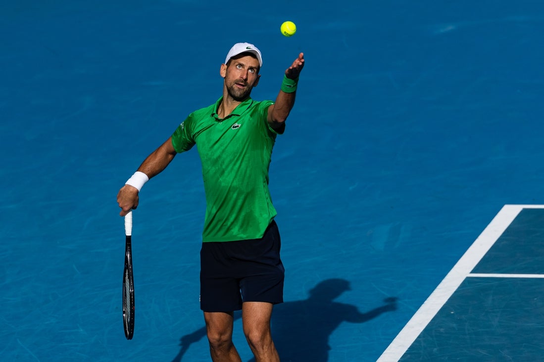 Jan 28, 2026; Melbourne, Victoria, Australia; Novak Djokovic of Serbia in action against Lorenzo Musetti of Italy in the quarterfinals of the menís singles at the Australian Open at Rod Laver Arena in Melbourne Park. Mandatory Credit: Mike Frey-Imagn Images Novak Djokovic capped a thrilling night — and early morning — of marathon men’s semifinals in Melbourne with a five-set victory against two-time defending Australian Open champion Jannik Sinner.