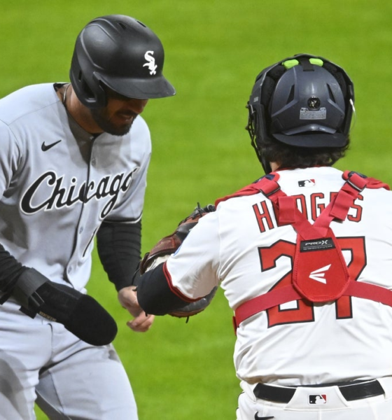 Oct 18, 2024; New York City, New York, USA; New York Mets right fielder Starling Marte (6) hits a double during the sixth inning against the...
