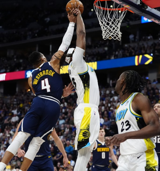 Aug 15, 2024; Los Angeles, California, USA; A WNBA official Wilson Evo NXT basketball approaches the rim and net at Crypto.com Arena. Mandatory Credit: Kirby Lee-Imagn...