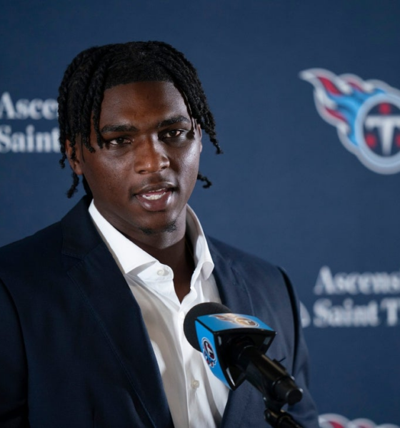 Jan 25, 2025; San Diego, California, USA; Harris English plays a shot from a bunker on the fourth hole during the final round of the Farmers...