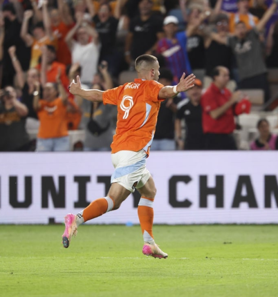 Ohio State Buckeyes head coach Ryan Day reacts after defeating Notre Dame Fighting Irish in the College Football Playoff championship game at Mercedes-Benz Stadium in Atlanta...
