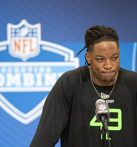 Cincinnati Bengals defensive coordinator Lou Anarumo watches a replay of the Denver Broncos wide receiver Marvin Mims Jr. (19) touchdown on the video board in the...