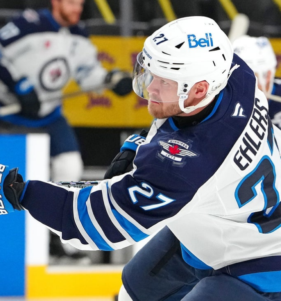 Dec 1, 2024; Dallas, Texas, USA; Winnipeg Jets goaltender Connor Hellebuyck (37) makes a glove save on a shot by Dallas Stars defenseman Ilya Lyubushkin (not...