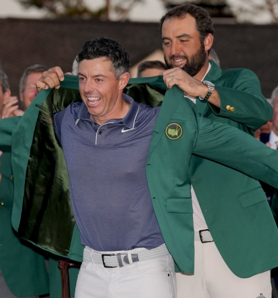 Nov 30, 2024; Columbus, Ohio, USA; Michigan Wolverines defensive end Derrick Moore (8) attempts to plant the flag on the Ohio State Buckeyes logo as Ohio...