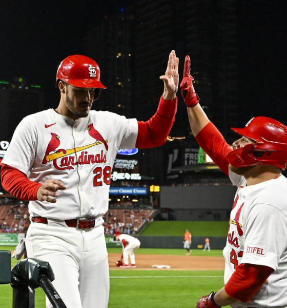 Oct 10, 2021; Kansas City, Missouri, USA; Kansas City Chiefs quarterback Patrick Mahomes (15) talks with Buffalo Bills quarterback Josh Allen (17) before warm ups at...