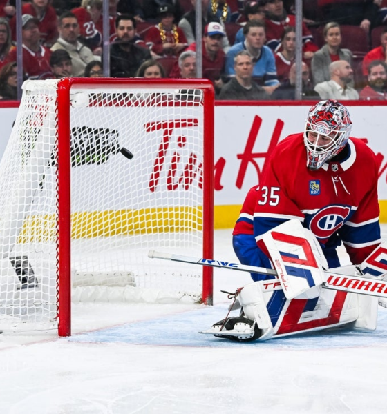 Nov 25, 2024; Newark, New Jersey, USA; New Jersey Devils right wing Timo Meier (28) is escorted off the ice after receiving a game misconduct penalty...