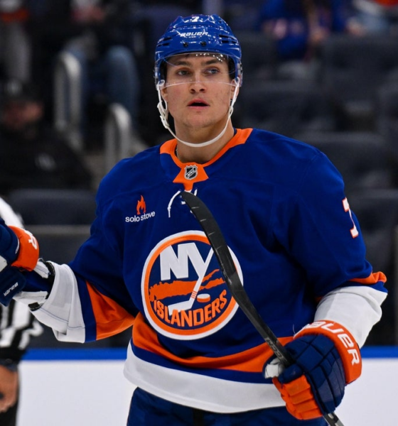 Oct 14, 2024; Denver, Colorado, USA; New York Islanders center Mathew Barzal (13) controls the puck in the first period against the Colorado Avalanche at Ball...