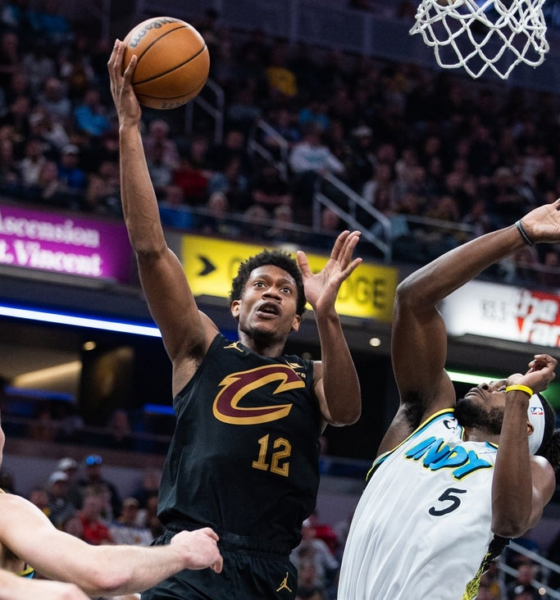 Oct 25, 2024; Portland, Oregon, USA; Portland Trail Blazers guard Scoot Henderson (00) drives to the basket past New Orleans Pelicans center Yves Missi (21) during...