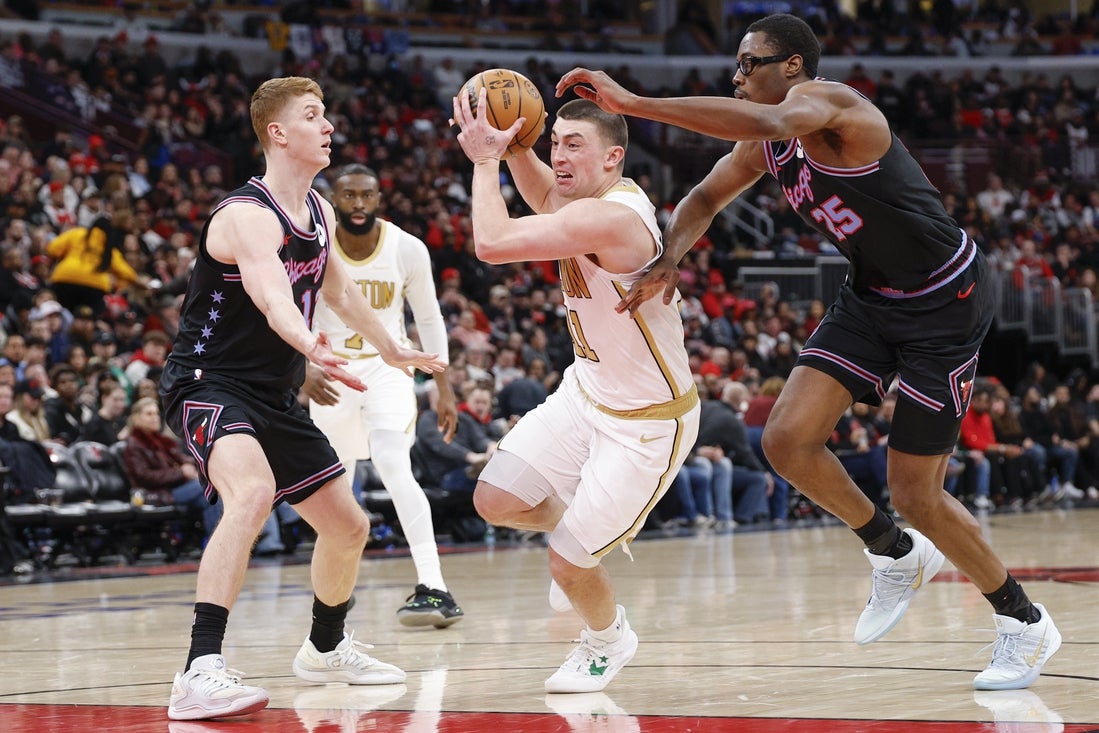 Jan 24, 2026; Chicago, Illinois, USA; Boston Celtics guard Payton Pritchard (11) drives to the basket against Chicago Bulls guard Kevin Huerter (13) and forward Jalen Smith (25) during the second half at United Center. Mandatory Credit: Kamil Krzaczynski-Imagn Images Boston Celtics guard Payton Pritchard has been dealing with an injury to a finger on his left (non-shooting) hand, but it doesn’t seem to have hurt his accuracy.