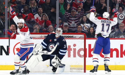 Feb 4, 2026; Winnipeg, Manitoba, CAN; Montreal Canadiens right wing Josh Anderson (17) celebrates a goal against Winnipeg Jets goaltender Connor Hellebuyck (37) in the second period at Canada Life Centre. Mandatory Credit: James Carey Lauder-Imagn Images Brendan Gallagher and Josh Anderson each had a goal and two assists as the visiting Montreal Canadiens defeated the Winnipeg Jets 5-1 on Wednesday during the final game for both teams ahead of the Olympic break.